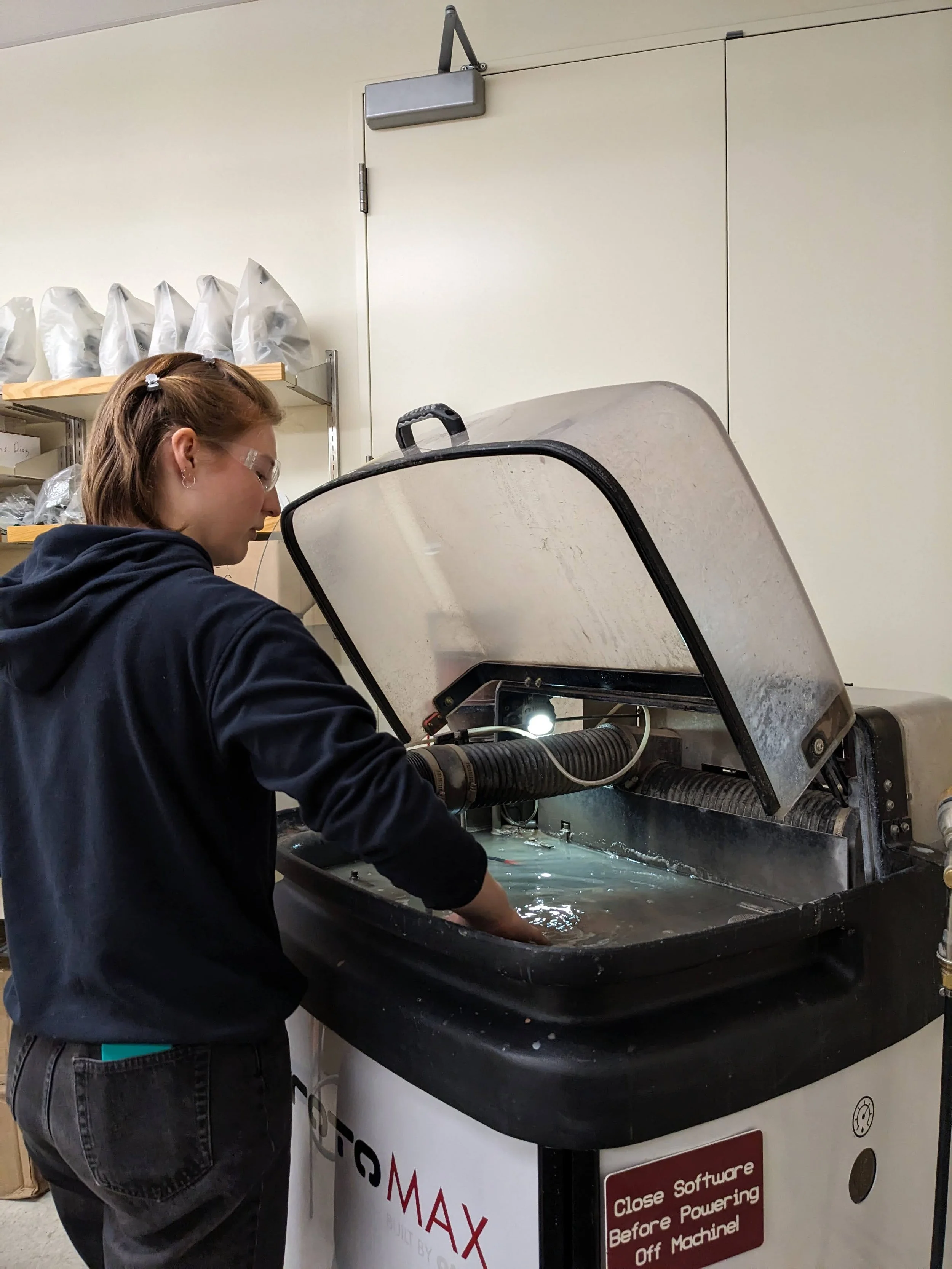 Right: Using CNC lathe to fabricate the bell dome, as school makerspace does not have stamping capability